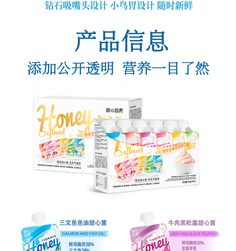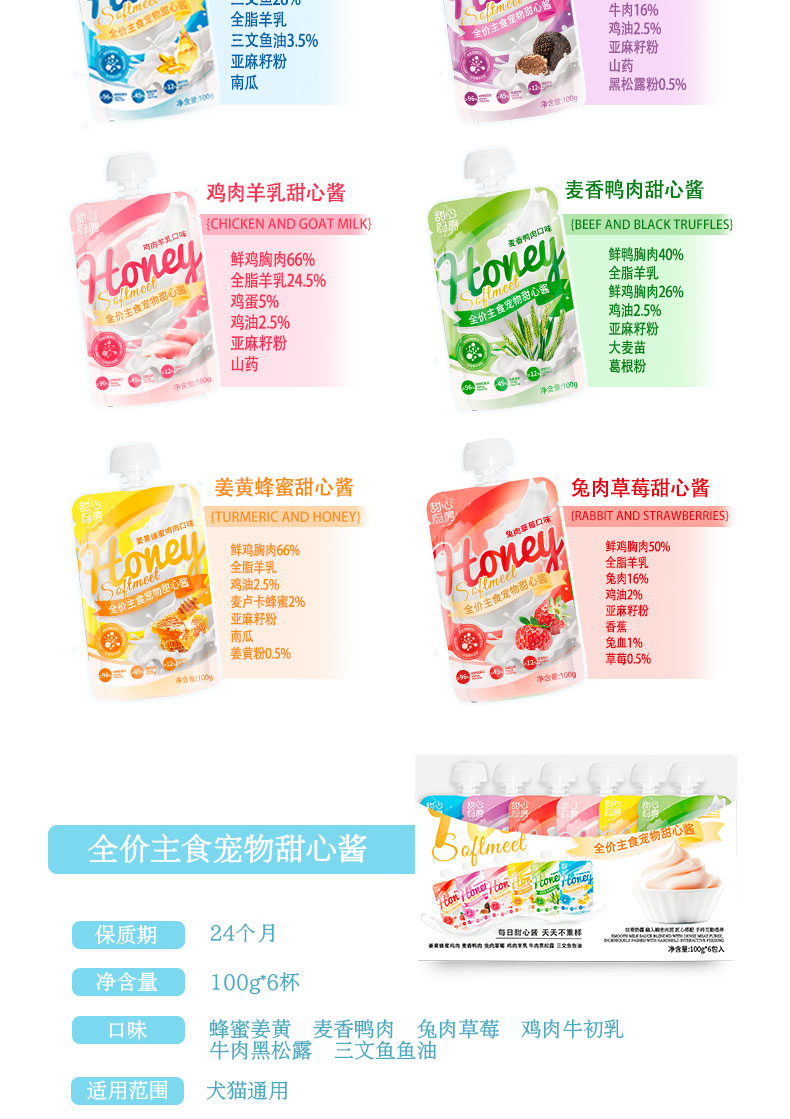 甜心廚房 甜心醬 - 混合6種口味(雞肉羊乳/兔肉草莓/三文魚魚油/牛肉黑松露/薑黃蜂蜜雞肉/麥香鴨肉)