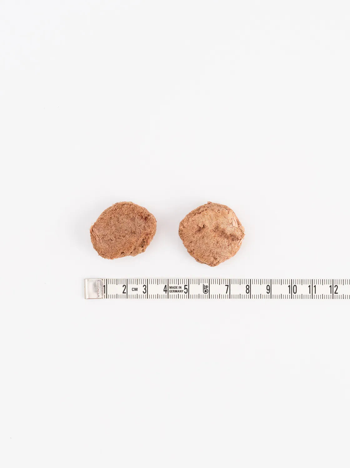 為了狗狗的安全,建議您在餵食前先仔細檢查並適度剝開肉餅