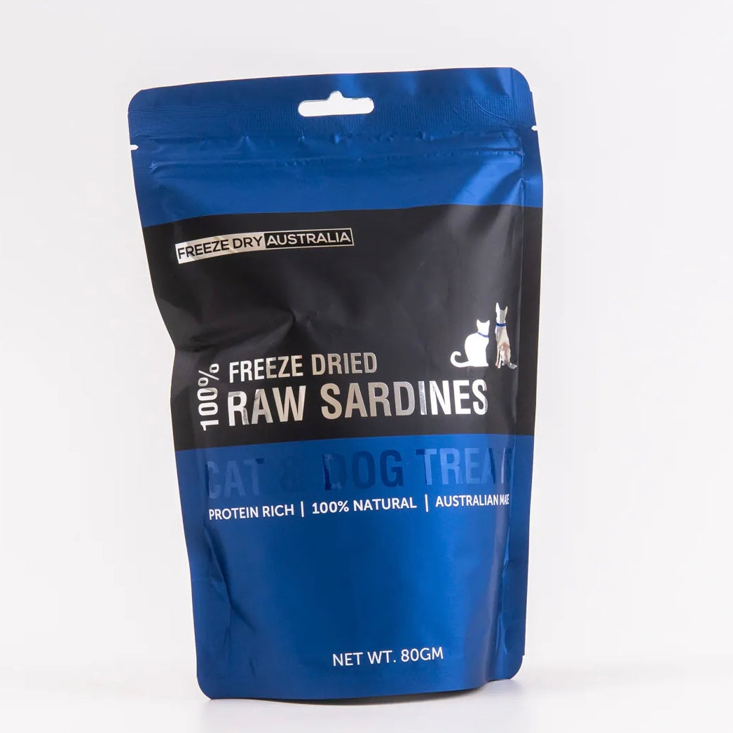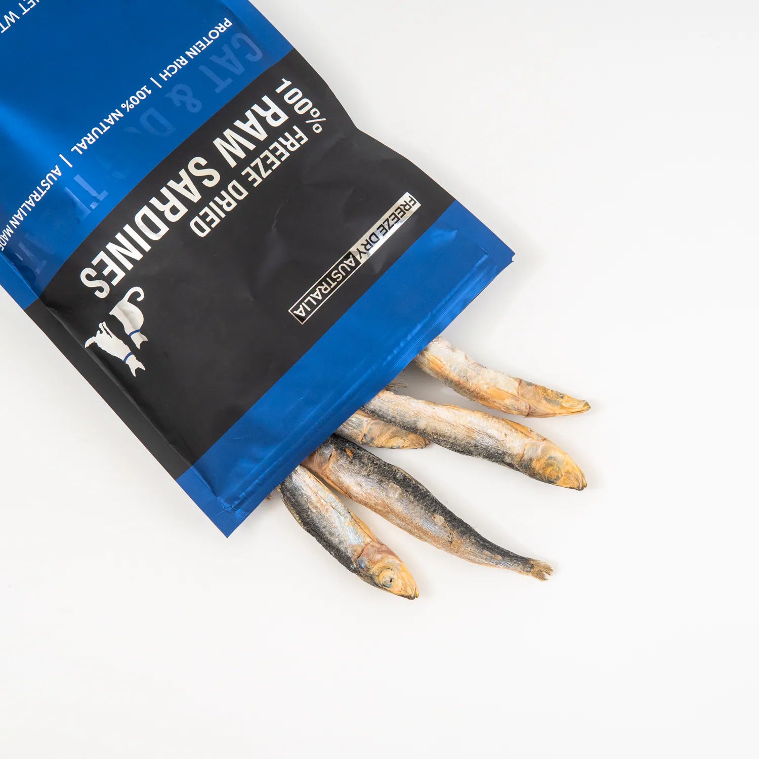 Freeze Dry Australia 的沙丁魚(Pilchard)由 100% 純沙丁魚製成。沙丁魚富含 Omega-3 脂肪酸,提供豐富的維生素 B3、B12 和維生素 D、硒以及有益健康的 Omega-3 脂肪酸。沙丁魚也是磷和鈣的良好來源,並且富含蛋白質。沙丁魚對寵物的皮膚和毛髮非常有益,有助於緩解過敏(即使是嚴重過敏)。沙丁魚具有極佳的抗發炎功效,對大腦健康也很有益,是完美的零食。